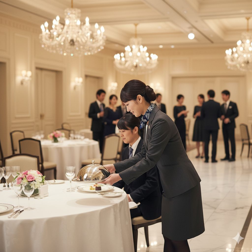 ・以下のホテル宴会サービススタッフ女性のイメージ画像3枚はAI生成によるものです。
