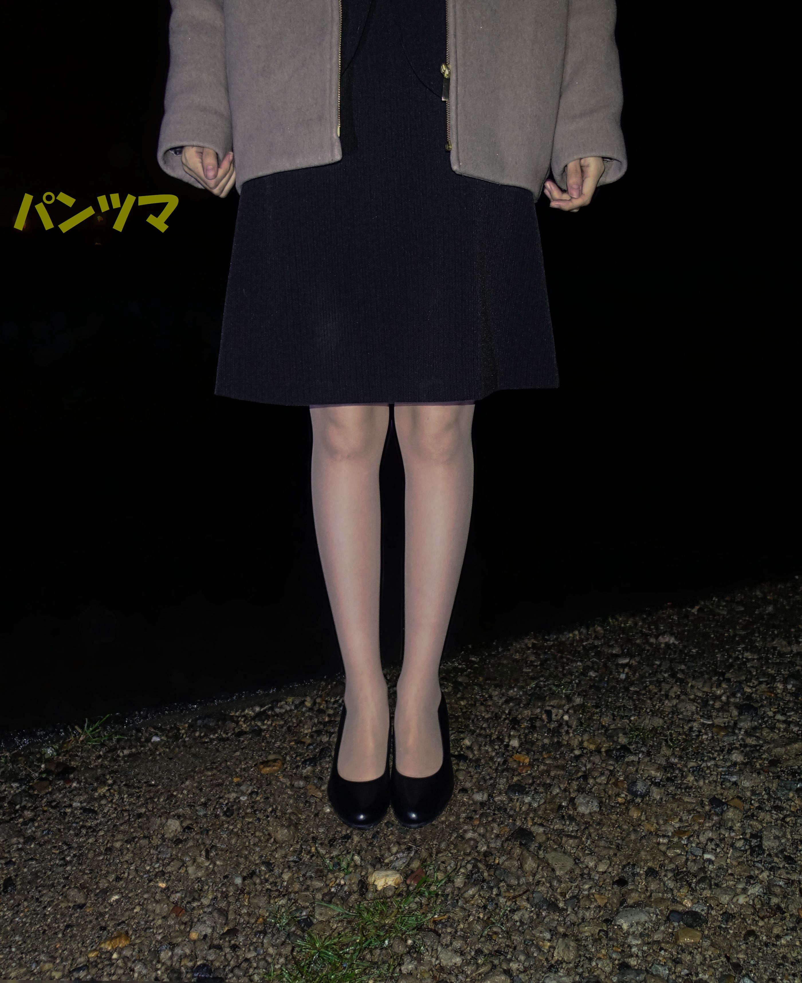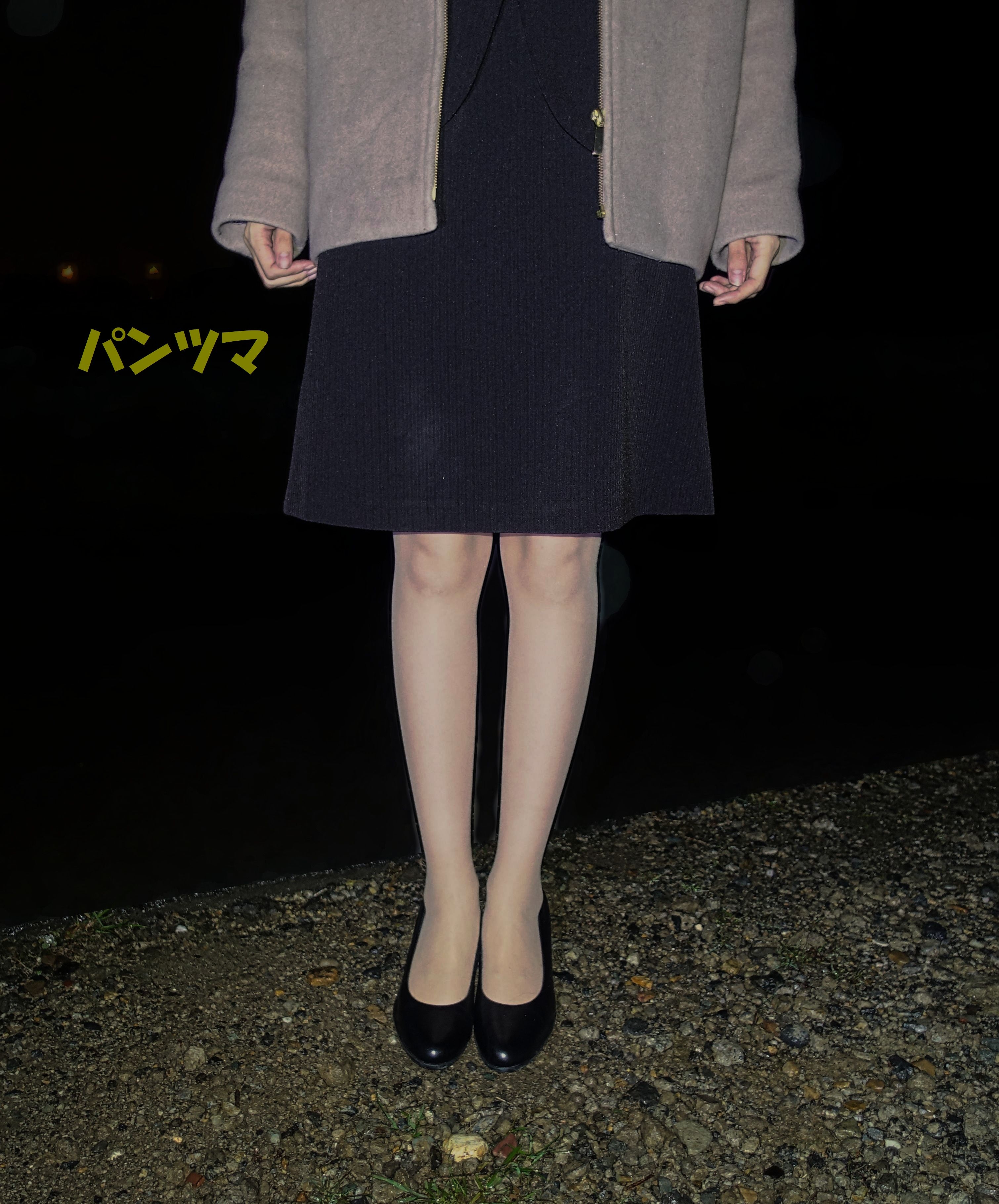 スリムな女性ですが、しゃがむとパンスト太ももにボリューム感が出ますね!